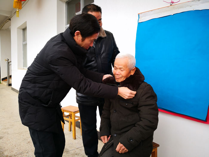 为老人整理衣服