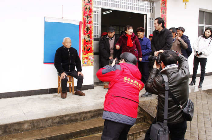 九江摄影网讯(王黎明)为积极响应做新时代“红色文艺轻骑兵”号召,进一步丰富城乡群众精神文化生活,2月18日,德安县文联主席胡美玲、县摄影协会主席王黎明,副主席赵卫东带领部分影友冒着严寒来到丰林镇敬老院,组织开展“我们的中国梦——摄影文化进万家”公益活动。摄影师们为每位孤寡老人整理衣服,搀扶他们坐好,为他们精心拍摄长寿照片,并现场打印、装框,赠送给他们,把每位老人欢心的笑容定格在镜头里。
