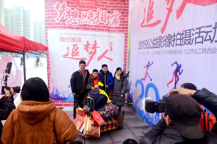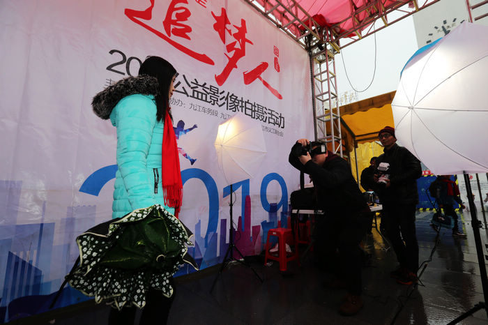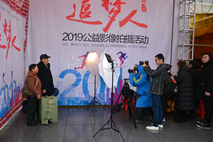 九江摄影网讯(李涛渊)他乡亦故乡,离乡返乡,年复一年。2月18日、19日,九江市摄影家协会联合九江车务段、掌中九江、九江义工联在火车站广场,开展了主题为“我们都是追梦人”公益拍摄活动,为九江市火车站的旅客免费拍摄一张照片并现场打印赠送给他们。尽管天公不作美,但在短短的两天活动中,参加活动的摄影家共为旅客们拍摄了100多张照片,他们有返程务工的农民、有求学路上的学生、有带着儿女回家探亲的家人、也有火车执勤的工作人员……