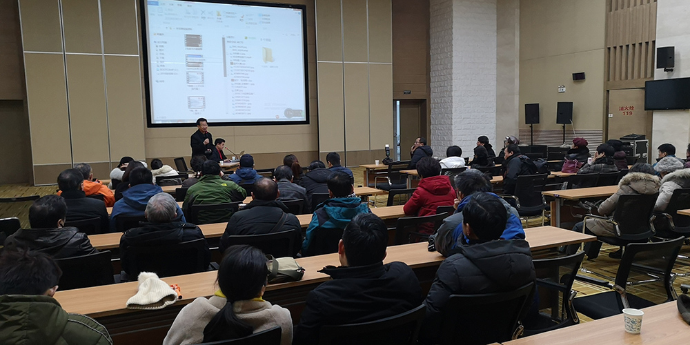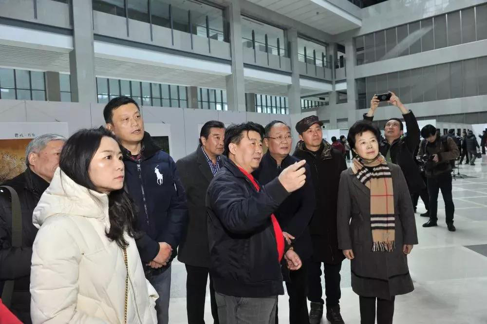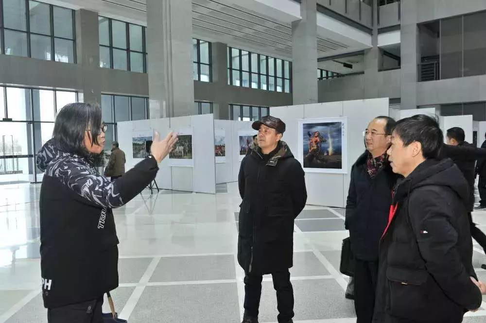 徐渊明、宋小勇、杨青在展览馆与摄影家在一起交流