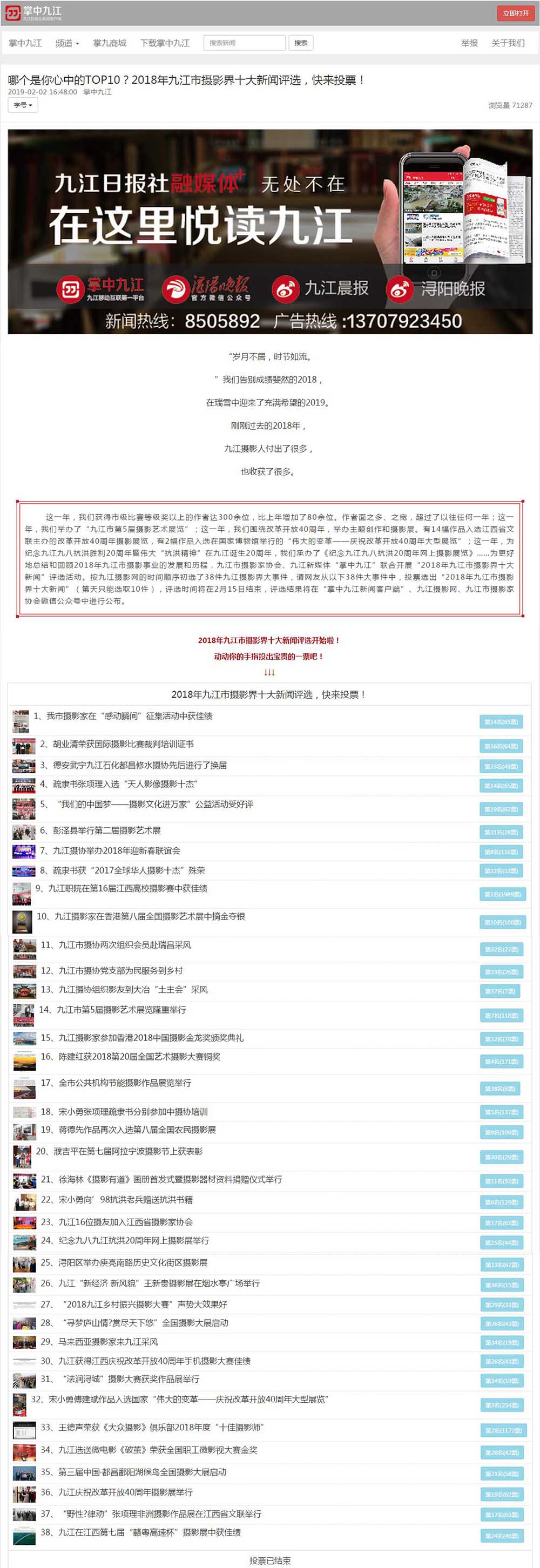 “2018年九江市摄影界十大新闻”评选揭晓