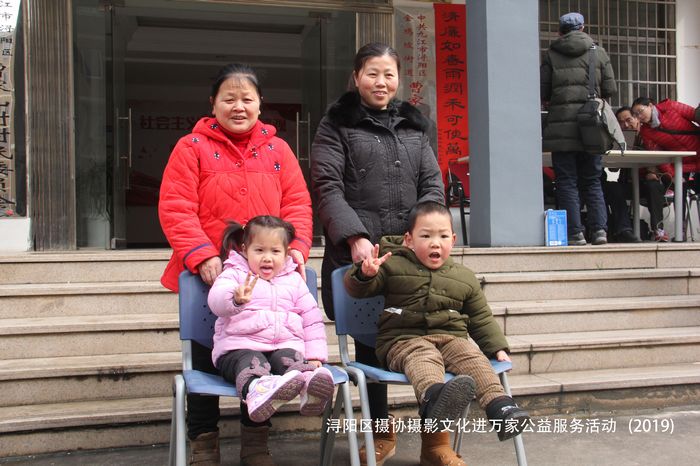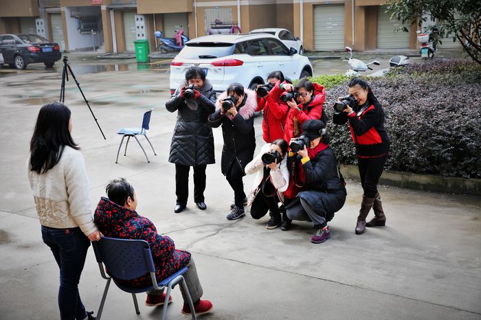 曹家山复建址小区包括游岭村、大王庙村、金鸡坡村、曹家山村等四个村的拆迁村民,有近1000户家庭。浔阳摄影志愿者一到小区立即开展工作,拉横幅装机子布置场地,为村民们拍摄 “全家福”,用镜头为广大村民定格美好幸福的快乐生活。