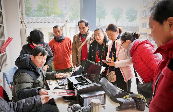 浔阳区摄影家协会主席周卉向村民们赠送挂历和照片