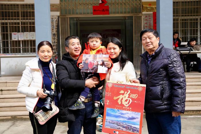 江西省摄影家协会副主席、九江市摄影家协会主席宋小勇给村民们送挂历和照片