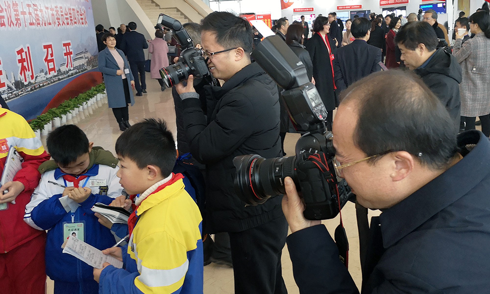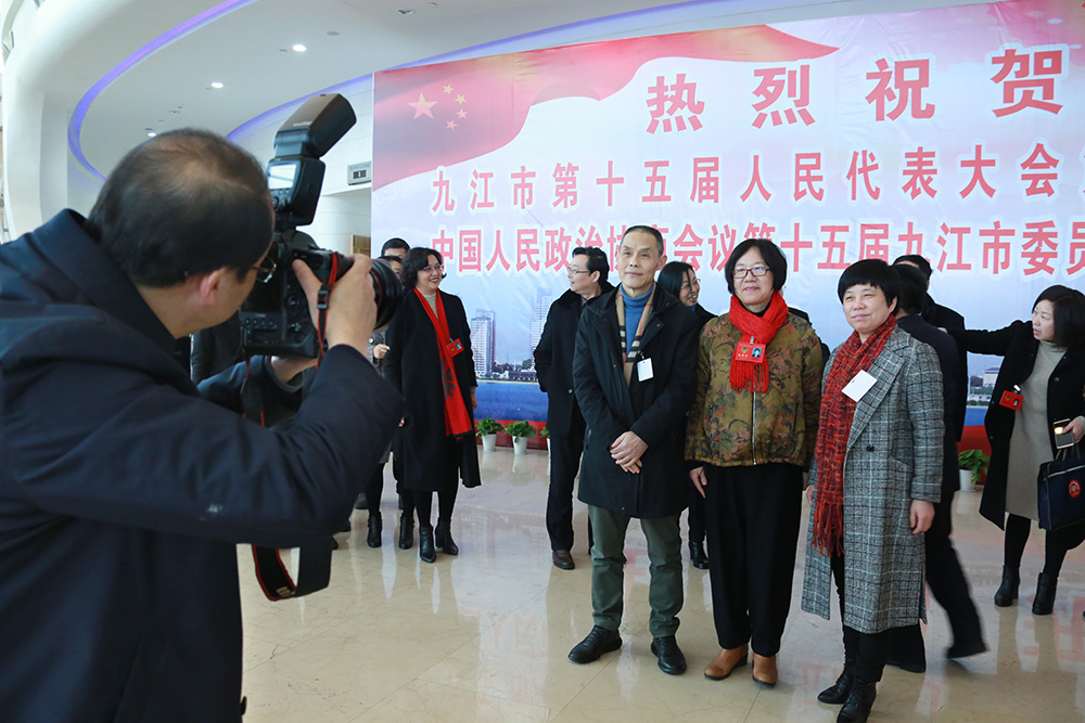 九江市摄影家协会副主席、九江日报图片中心总监杨青在“两会”采访中