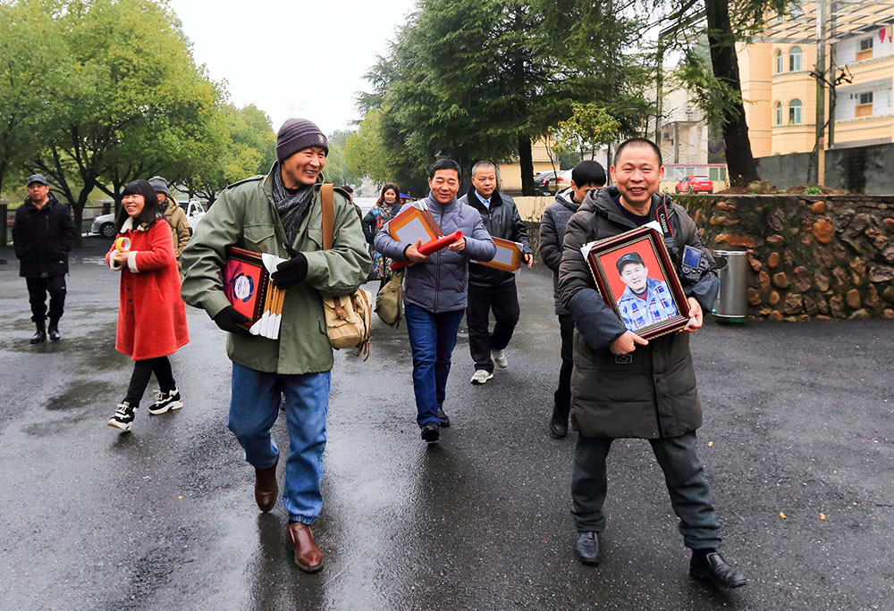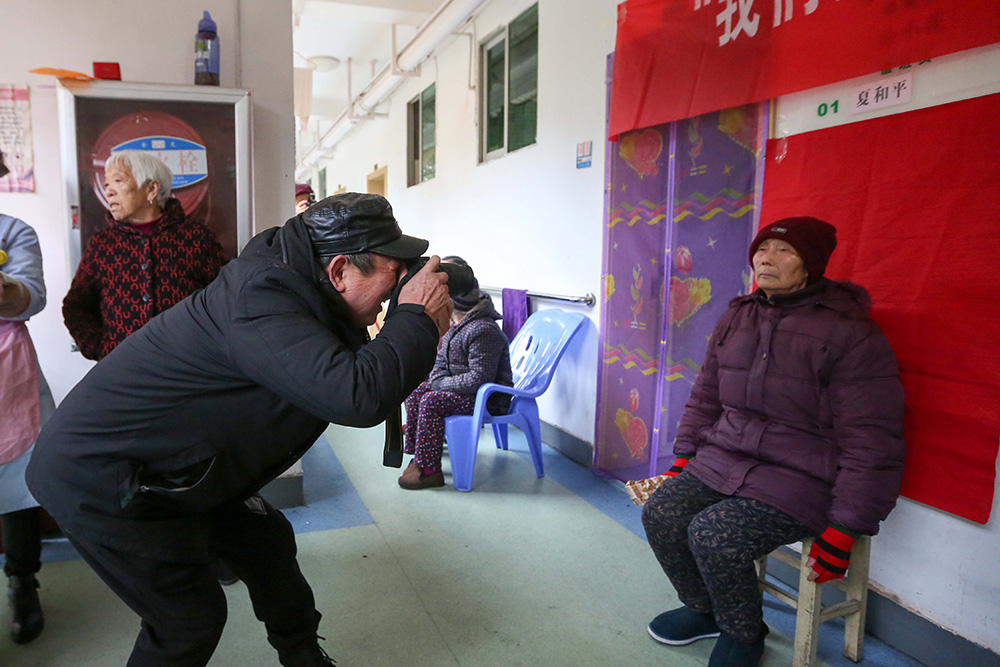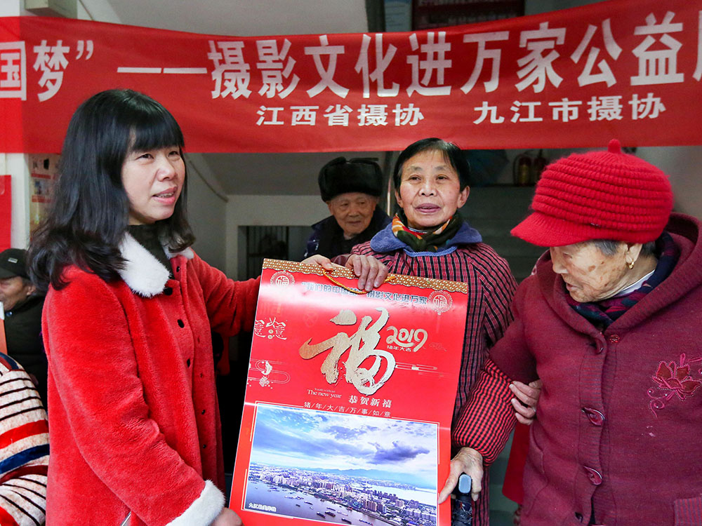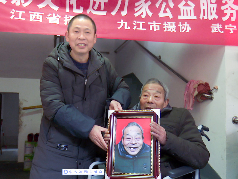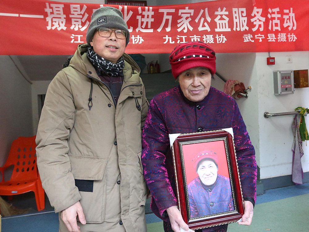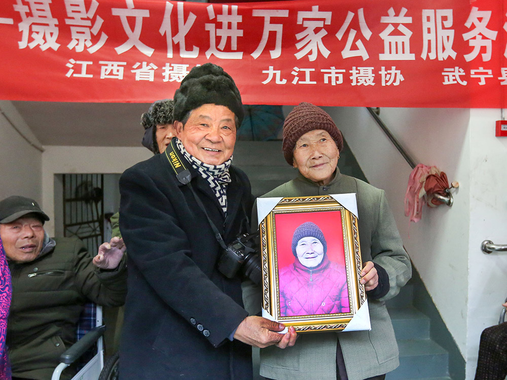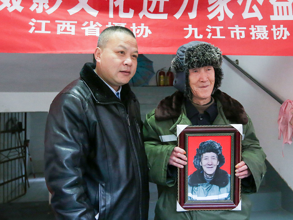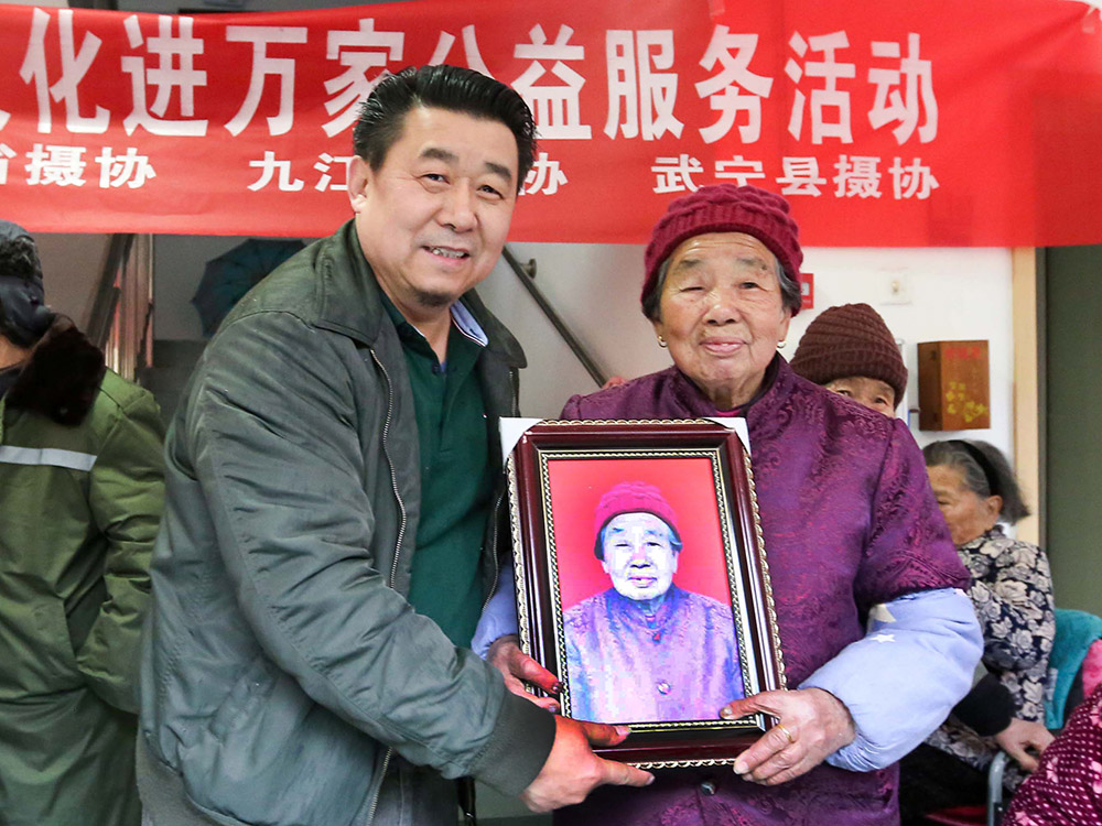 九江市摄协副秘书长、县摄协顾问张项理为老人送照片