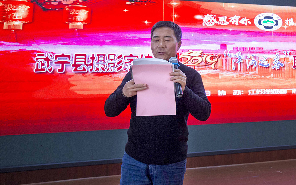 蒋德先、乐荣宝分别代表武宁县摄影协会和活动赞助单位代表致辞。蒋德先回顾了武宁县摄影家协会成立十年来取得的工作成绩:一是协会队伍不断扩大。会员从成立之初的40余人增加到160多人,并发展市级会员50人,省级会员20人,国家级会员3人。二是摄影活动丰富多彩,举办摄影采风活动42次,摄影展览30余个,摄影比赛20次。三是摄影成果丰硕喜人,协会40多人在全国市级以上比赛中1000多幅作品获奖。四是交流平台,全面到位。刊出纸质版《武宁摄影》8期,《武宁摄影微刊》82期,武宁摄影网站会员刊发会员交流帖1万多个。五是工作成绩,得到肯定。协会10年6次被评为九江市摄影家协会先进集体,2次获得九江市摄影艺术展优秀组织奖。