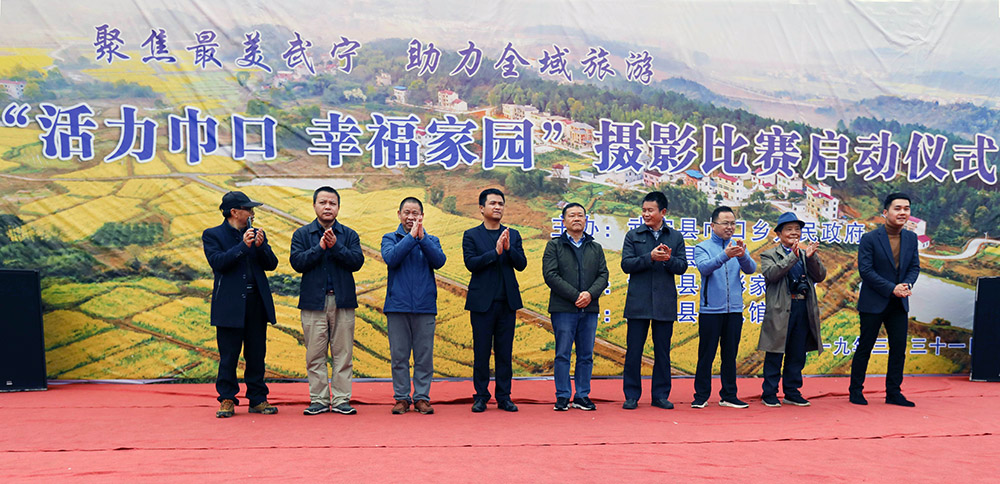 武宁县文联主席雷鸿尧对大赛的成功举办表示祝贺。他说,巾口原名“幸福公社”,是弥漫着幸福的地方,现在有知名的幸福里新农村示范点和国家AAA景区花千谷,走进巾口,你就拥抱了幸福。他希望摄影家们利用手中的“飞机大炮”,通过辛勤劳动和精心创作,捕捉住巾口最美的瞬间、拍出最美的画面。