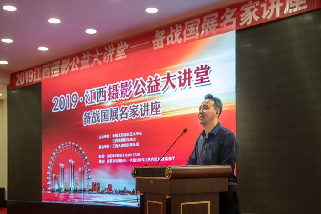 九江摄影网讯(一竹 木力)6月8日下午,为备战第27届国展,进一步提升江西摄影创作水平,由中国文联摄影艺术中心与江西省摄影家协会共同主办,江西省天强数码摄影俱乐部协办,2019江西摄影公益大讲堂之备战国展名家讲座,在江西南昌江西宾馆九楼会议厅隆重举行。本次备战国展名家讲座,特邀中国摄影金像奖获得者、国展评委、著名摄影家刘宽新先生,作了《见证博弈、感言沉浮——回望往届国展、提高投稿质量》的精彩授课。