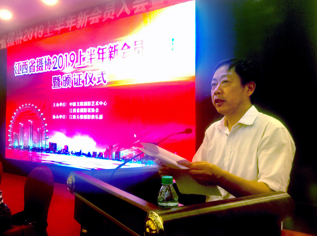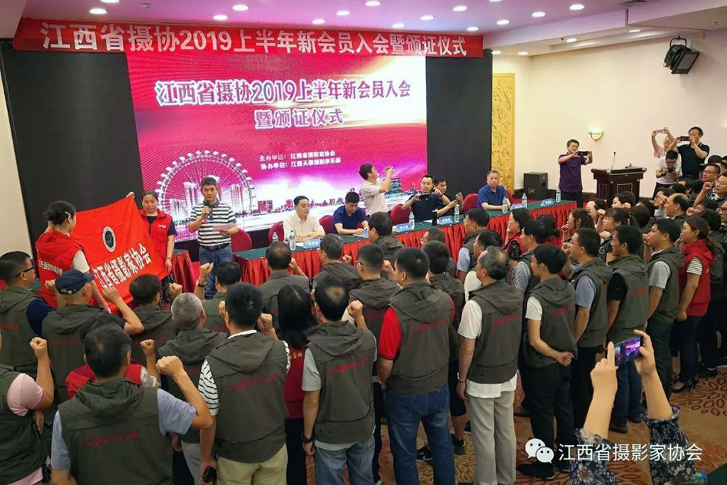 九江摄影网讯(木力)6月9日上午,为了增强新会员的荣誉感,进一步提升会员文化素养,江西省摄影家协会在南昌江西宾馆九楼会议厅,举行了2019年上半年新会员入会集体颁证仪式。江西省摄影家协会主席徐渊明,副主席宋小勇、肖戈、娄鸿雁、池晓虹、袁剑波、曾正东,各设区市摄协负责人、省摄协常务理事及2019上半年新会员百余人参加。