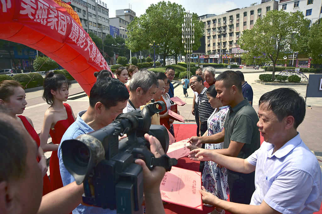 九江摄影网讯(木力)8月28日上午,由九江市摄影家协会、彭泽县林业局主办,彭泽县摄影协会、彭泽县绿化办、彭泽县博物馆协办的彭泽县“‘创森杯’森林城市•美丽家园”摄影大赛颁奖典礼暨作品展览在彭泽县中心广场举行。江西省摄影家协会副主席、九江市文联副主席、九江市摄影家协会主席宋小勇,九江市文联副主席饶金星,彭泽县委常委、宣传部长邵春霞,彭泽县人民政府副县长戢东晓,九江市摄影家协会副主席蔡杰、杨青、罗匡龙,彭泽县林业局党委书记、局长冯锦华,彭泽县文联主席吴问根等出席颁奖典礼并为获奖者颁奖,随后参观了摄影作品展览。