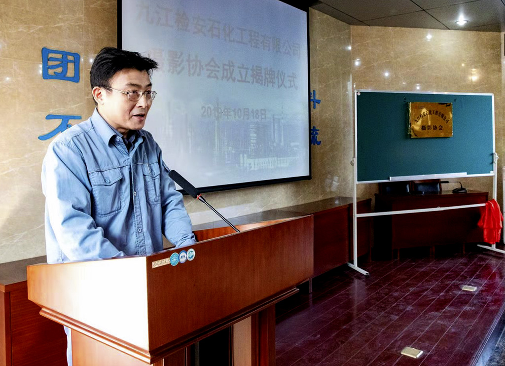 九江摄影网讯(木力)“金秋十月,丹桂飘香”,在祖国母亲70华诞之际,10月18日上午,九江检安石化工程有限公司摄影协会正式揭牌成立!江西省摄影家协会副主席、九江市文联副主席、九江市摄影家协会主席宋小勇,江西省旅游摄影协会副会长、庐山摄影家协会副主席殷锡翔,九江石化摄影协会主席汪光化,九江检安石化工程有限公司董事长代洪松、党委书记王志刚、摄影艺术热心人士曾记平等出席揭牌仪式。