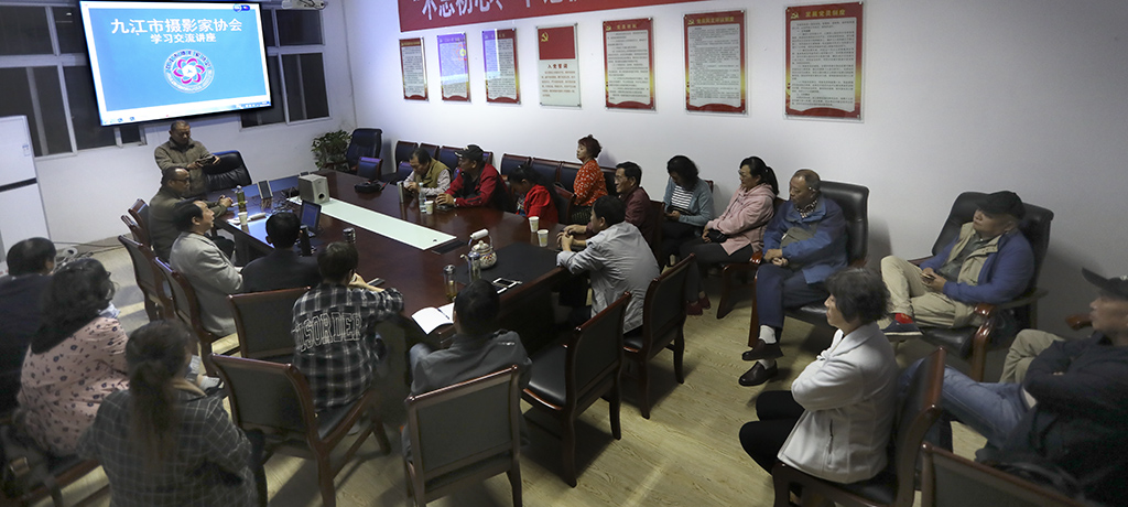 九江摄影网讯(木力)11月16日晚,九江市摄影家协会在市文艺家之家举行第二次学习交流活动,由中国摄影家协会会员、江西省旅游摄影协会副会长、庐山摄影家协会副主席殷锡翔点评摄影爱好者拍摄的庐山风光作品,分享他自己的优秀作品创作经过。江西省摄影家协会副主席、九江市文联副主席、九江市摄影家协会主席宋小勇主持交流讲座,三十多名影友参加聆听了交流讲座。