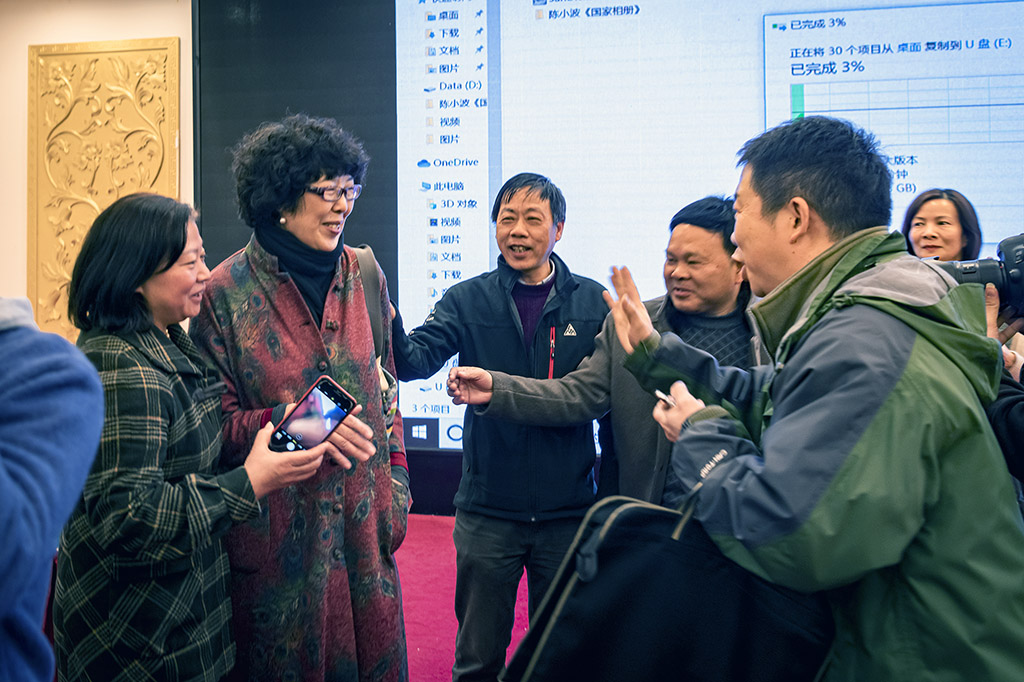 在王岩副主席的带领下,新会员集体宣读了《入会守则》 12月7日下午,中国摄影家协会副主席陈小波作了主题为《影像中的文化与历史》的精彩授课。她采用“边讲边看”的形式,让大家在观看《国家相册》系列微纪录片的同时,穿插讲述自己对于摄影的理解和好照片的的3个标准:写满历史痕迹、充满诗性、情感力量。