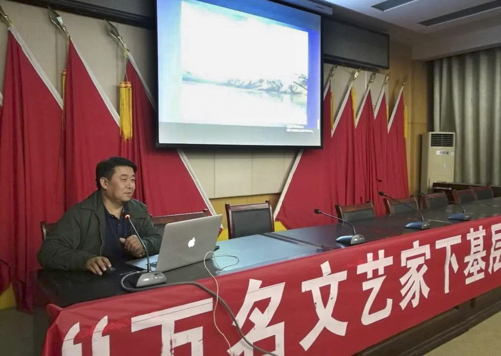 中国摄协会员、都昌县摄协主席傅建斌在都昌县为摄影爱好者授课《摄影作品赏析》。