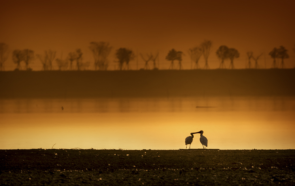 《白脸琵鹭的爱情》(铜奖) 陈建红 摄