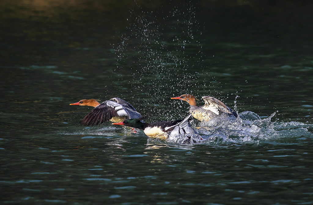 | 飞跃水面的青头潜鸭
