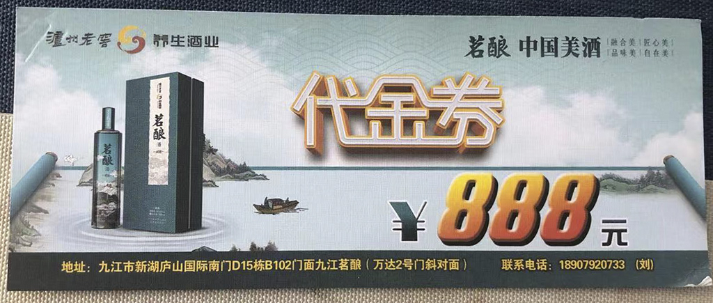 2、九江市茗酿销售有限公司提供代金券(每人1份):