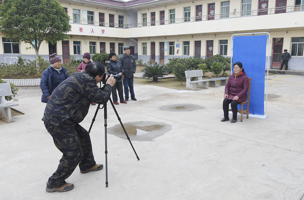 九江摄影网讯(宋建明)1月5日,永修县摄协八位摄影志愿者走进虬津镇敬老院,开展“我们的中国梦一摄影文化进万家”爱心公益服务活动。摄影志愿者首先与老人们一一握手并亲切交谈,询问他们的身体和生活情况,接着为老人们整理好衣服,扶他们坐好,先用相机为全体老人拍摄全家福,然后又为每位老人单独拍摄长寿照片,将他们幸福和欢乐的笑脸定格在镜头里。同时来自卫生系统的摄影志愿者熊红钢还为每位老人检查身体,测量血压,对血压偏高的老人叮嘱他们要按时吃药保重身体,并祝愿所有老人都健康长寿。