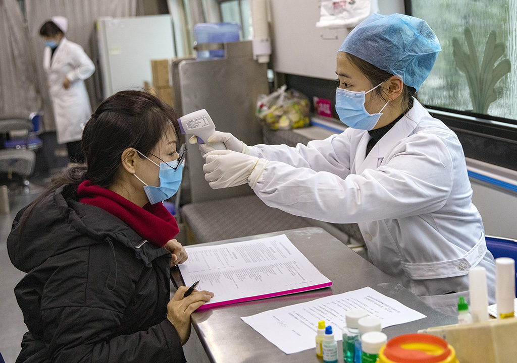 停靠在小区门口的献血车 2007年也是在春节期间,一位孕妇急需ARH阴性血,她知道情况后立即赶到血站,献了400毫升的鲜血,使孕妇及时得到了救治。 有仁爱之心的景如松不仅是一位义务献血者,还是九江蓝天救援队成立之初就参加的老队员,她十分热爱公益事业,先后两次赴四川雅安和云南昭通义务参加地震救灾。 (罗匡龙 摄影)