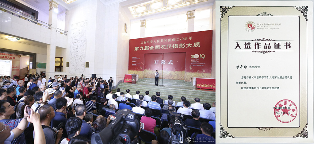 2019年8月10日,由中国文学艺术界联合会、中国摄影家协会主办的第九届全国农民摄影大展在北京民族文化宫展览馆开幕。其中庐山市摄影家协会副主席李平珍的作品《丰收的季节》(组照)获得入选。这也是九江摄影家连续多届都有作品入选全国农民摄影大展。 8、■周继根作品《百手起家》入展第27届全国摄影艺术展