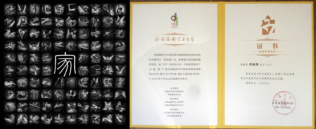 2019年9月27日至10月6日,由中国文学艺术界联合会、中国摄影家协会主办,山东省潍坊市人民政府、中国文联摄影艺术中心承办的第27届全国摄影艺术展览暨首届潍坊国际摄影周在山东潍坊十笏园文化街区开幕。354件作品从88181件(247445幅)中脱颖而出,亮相展览。中国摄影家协会会员、濂溪区摄影家协会副主席周继根的作品《百手起家》入选“创意和商业类”展览。 9、■“我和我的祖国”庆祝中华人民共和国成立70周年大型摄影展览举行