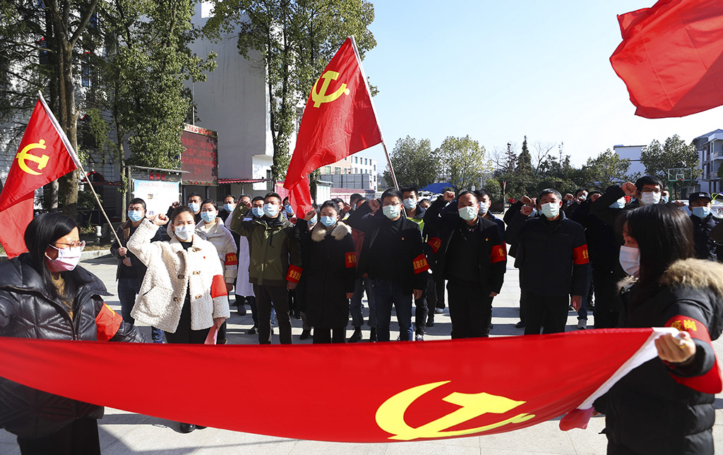 《党旗下的抗疫誓言》 梁振堂 摄