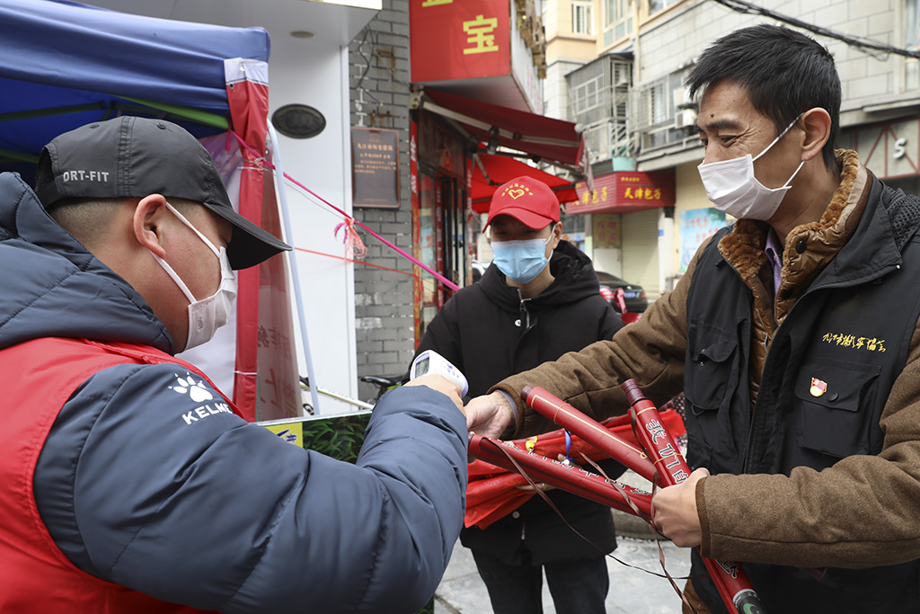 在甘棠街道小南门社区防疫关口