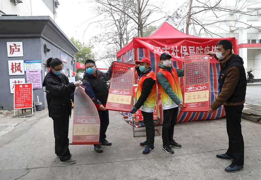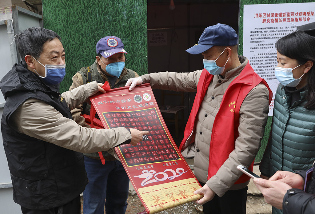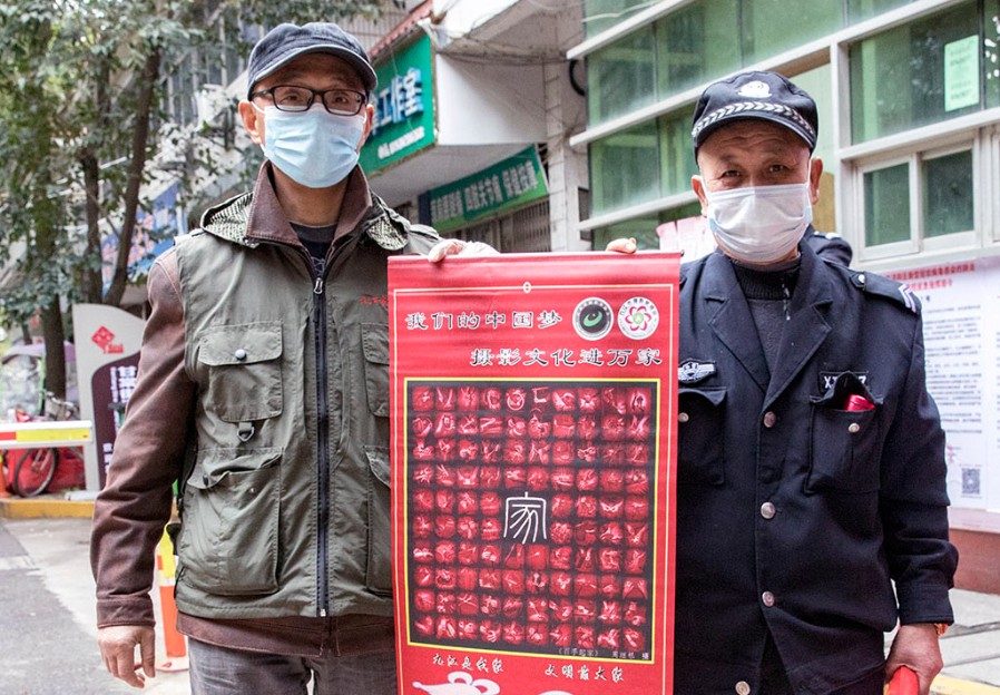宋小勇向龙山社区防疫关口志愿者赠送摄影作品转轴