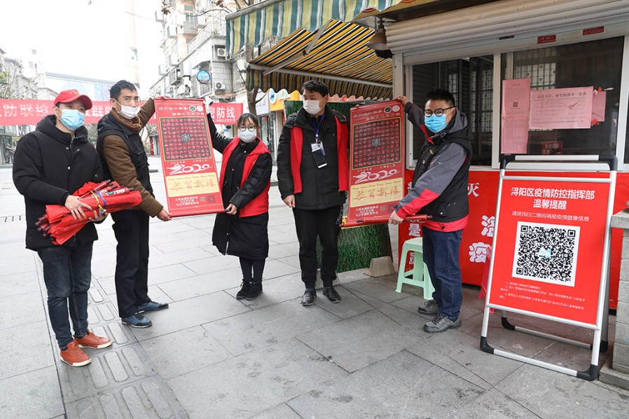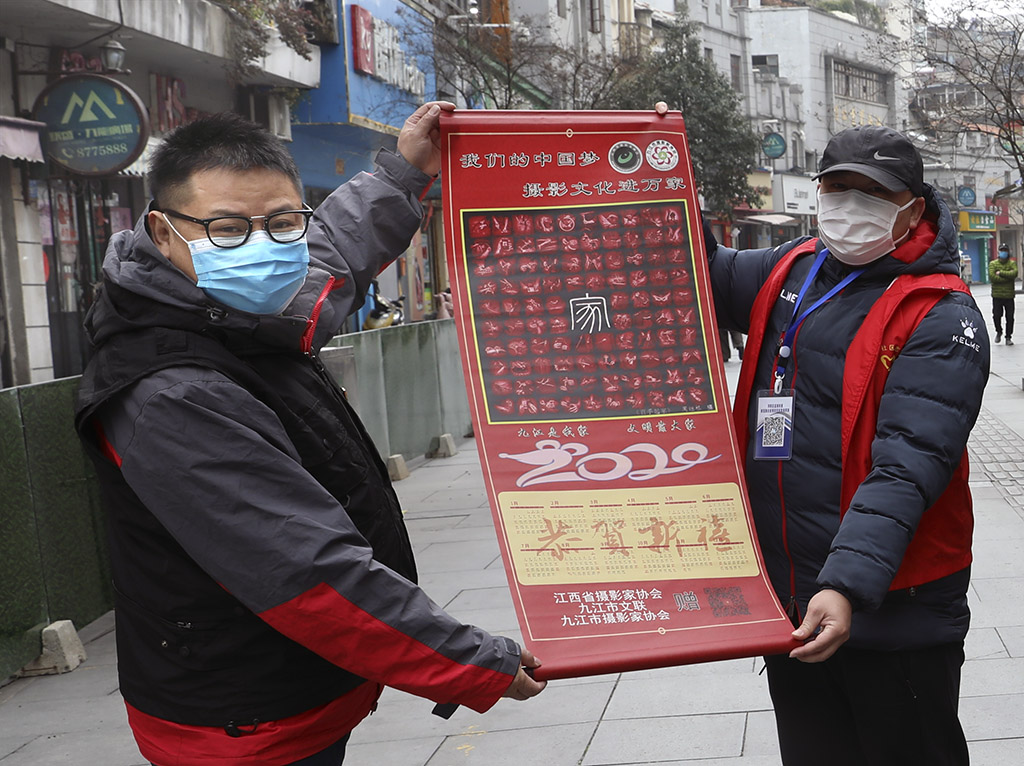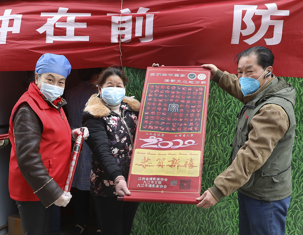 刘盛向湓浦社区防疫关口志愿者赠送摄影作品转轴
