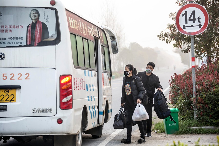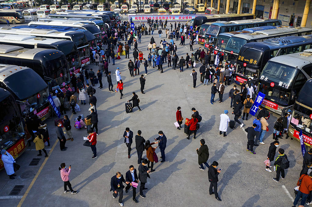 《包车免费输送农民工返岗》 孙 文 摄