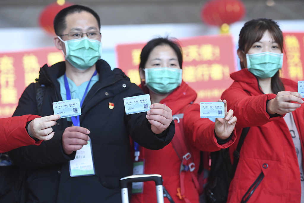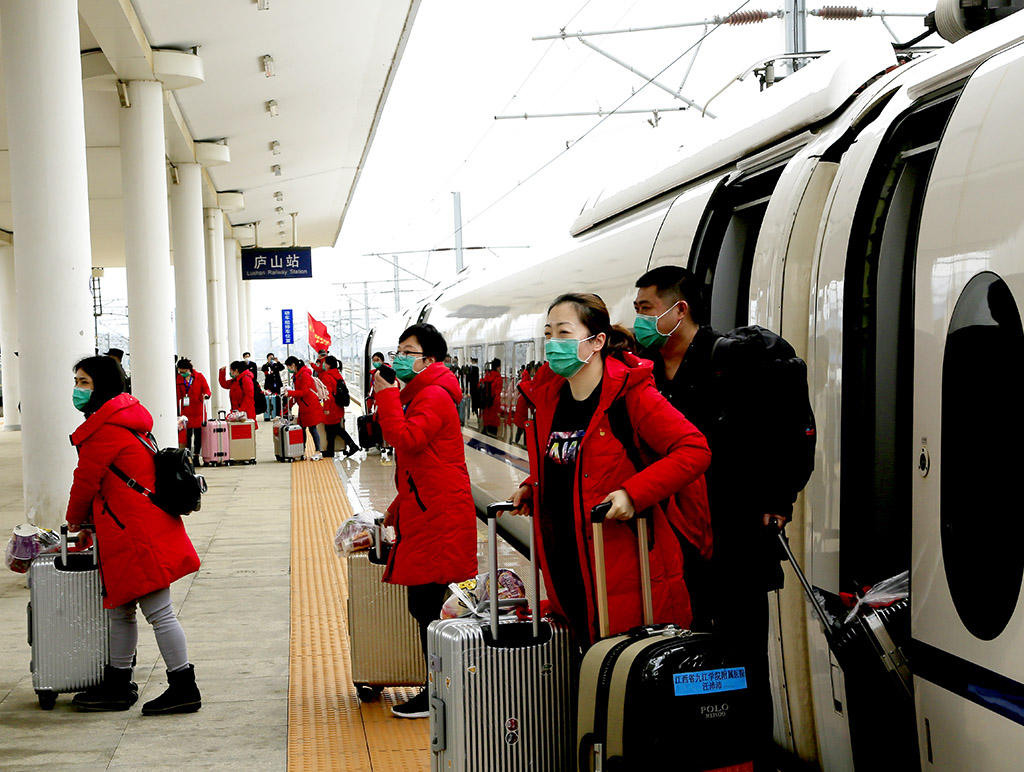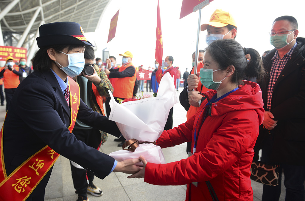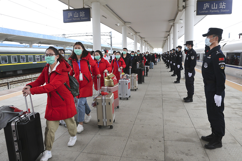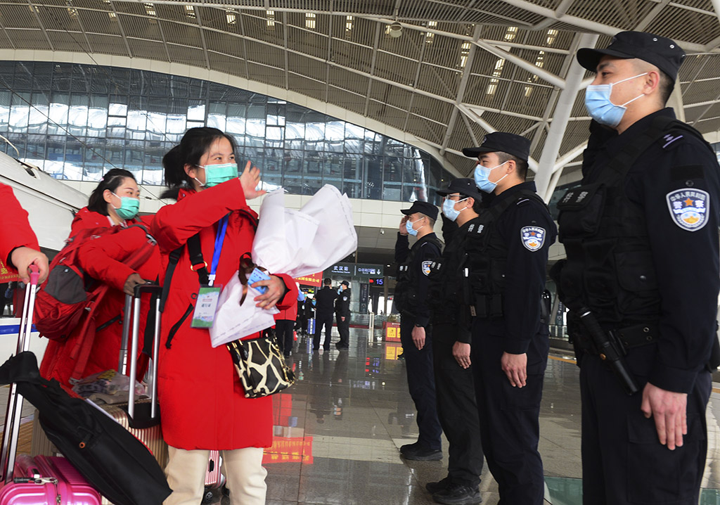 援鄂医疗队员走出站台 孙永胜 摄