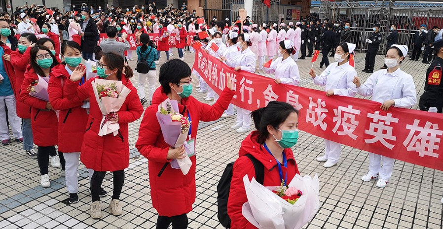 护士们列队欢迎抗疫英雄凯旋 刘 盛 摄
