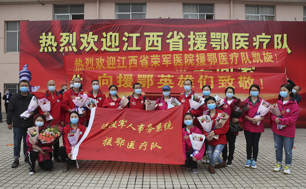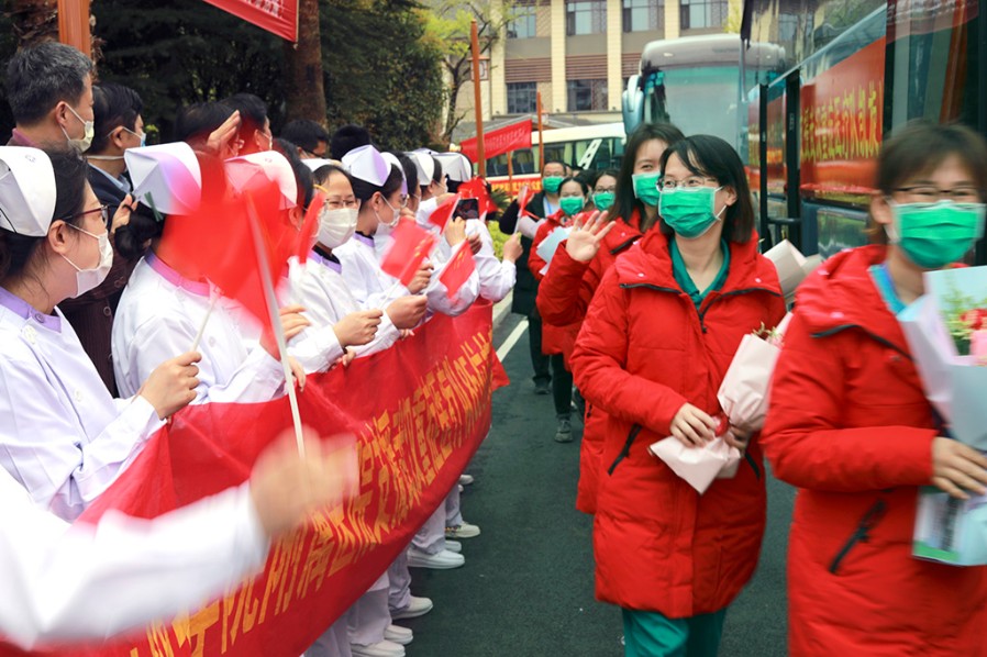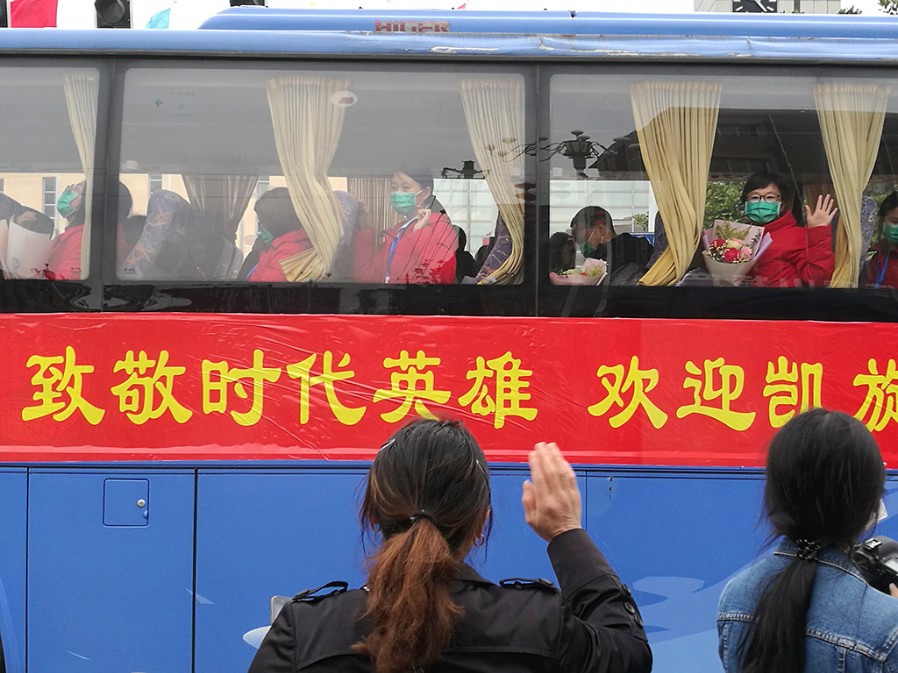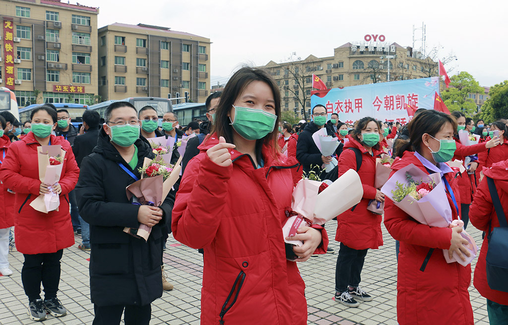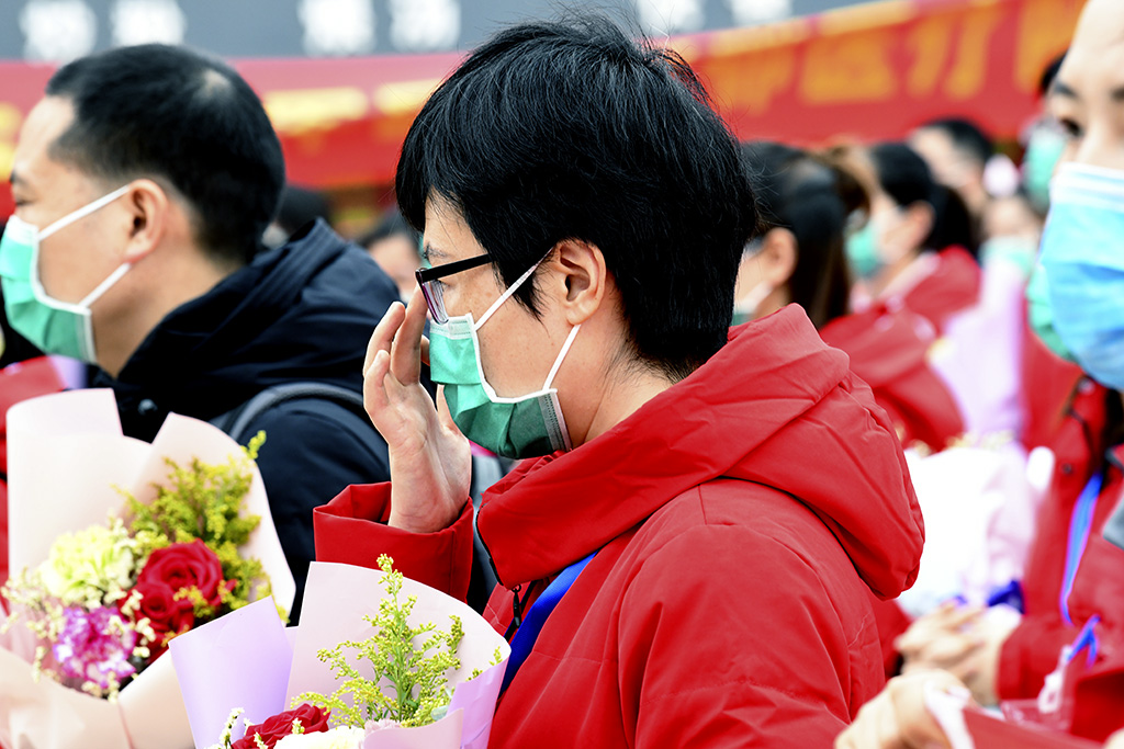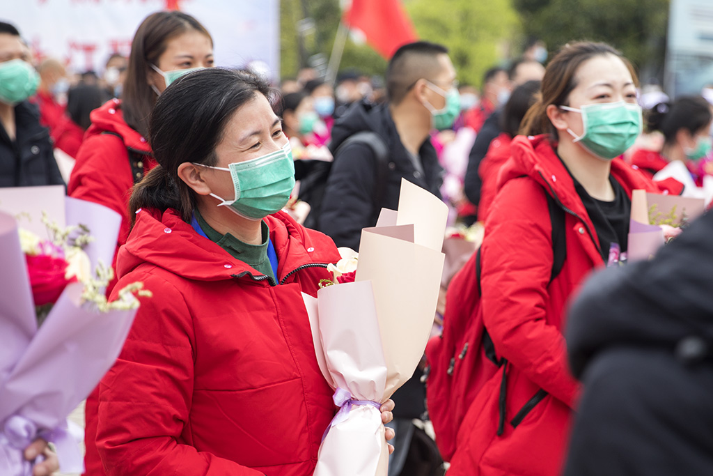 援鄂医疗队员在欢迎仪式上 宋小勇 摄