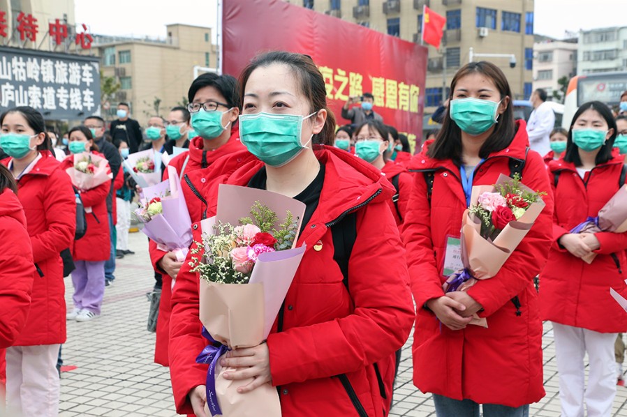 援鄂医疗队员在欢迎仪式上 杨 敏 摄