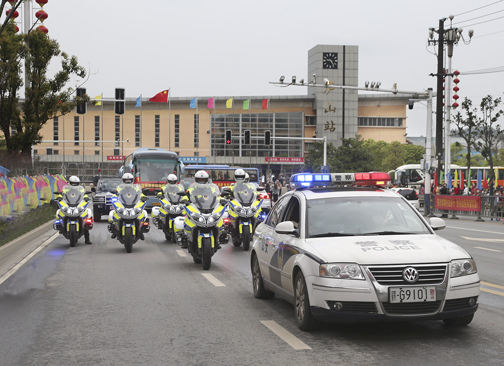 警用摩托车在庐山温泉为车队开道 章 歌 摄