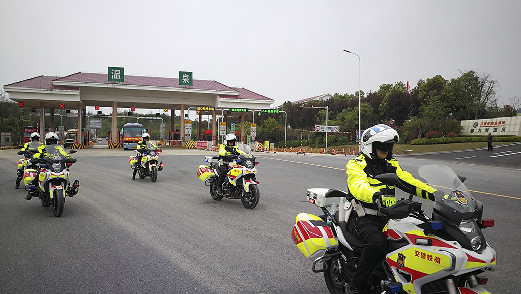 警用摩托组成箭阵为抗疫英雄护航 杨风胜 摄