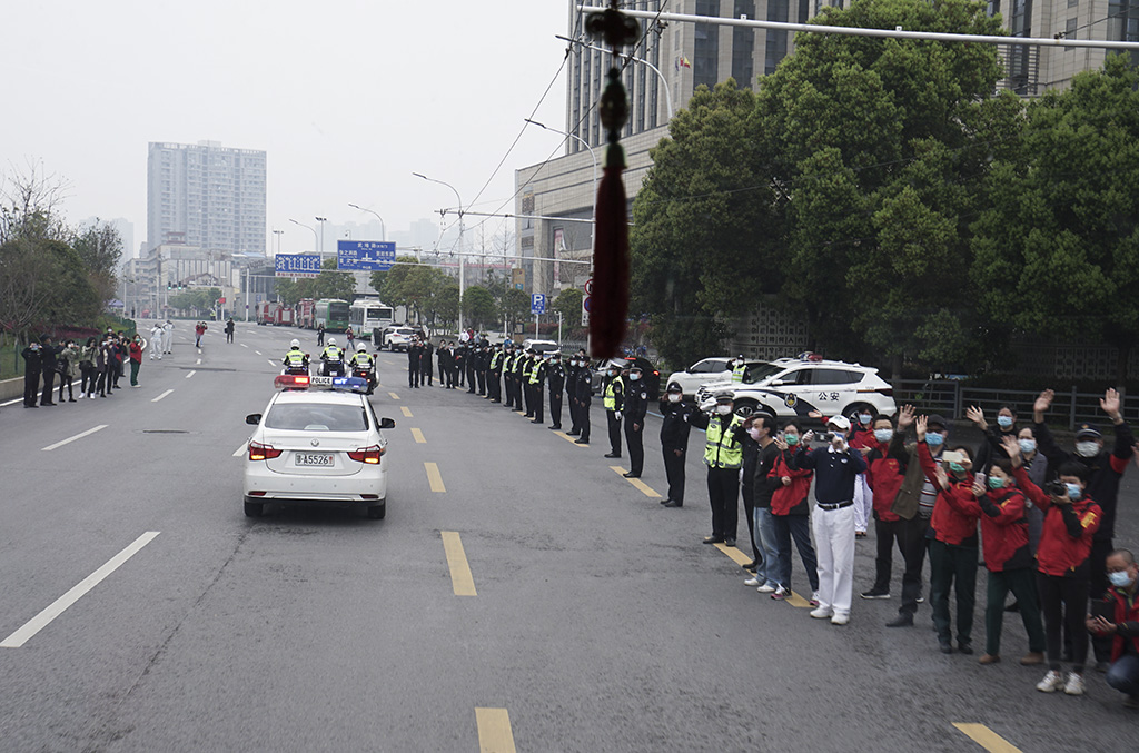 欢迎抗疫勇士载誉而归 章 歌 摄 3月22日早上,湖北省武汉市武昌区援汉医疗队协调组,区政府办,区商务局,区市场监督局,区交通局、区公安分局,区交通大队,区站前派出所工作人员在中山路排成了长长的欢送队伍。热情的武汉市民也拉着横幅夹道欢送,一声声“谢谢你们”“向英雄致敬”“感谢恩人”令人泪目。