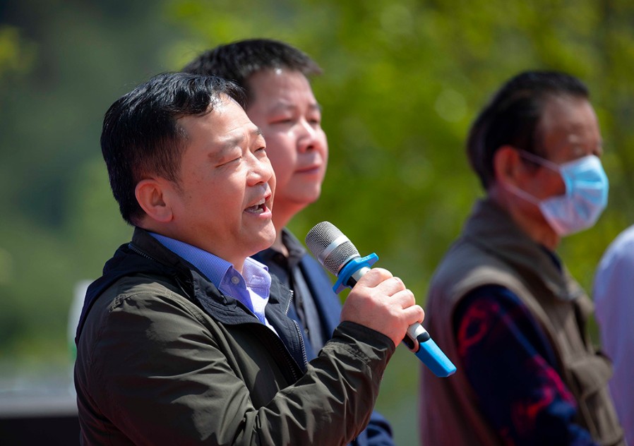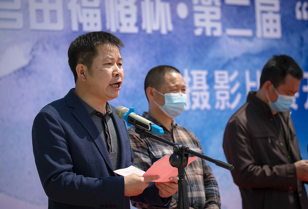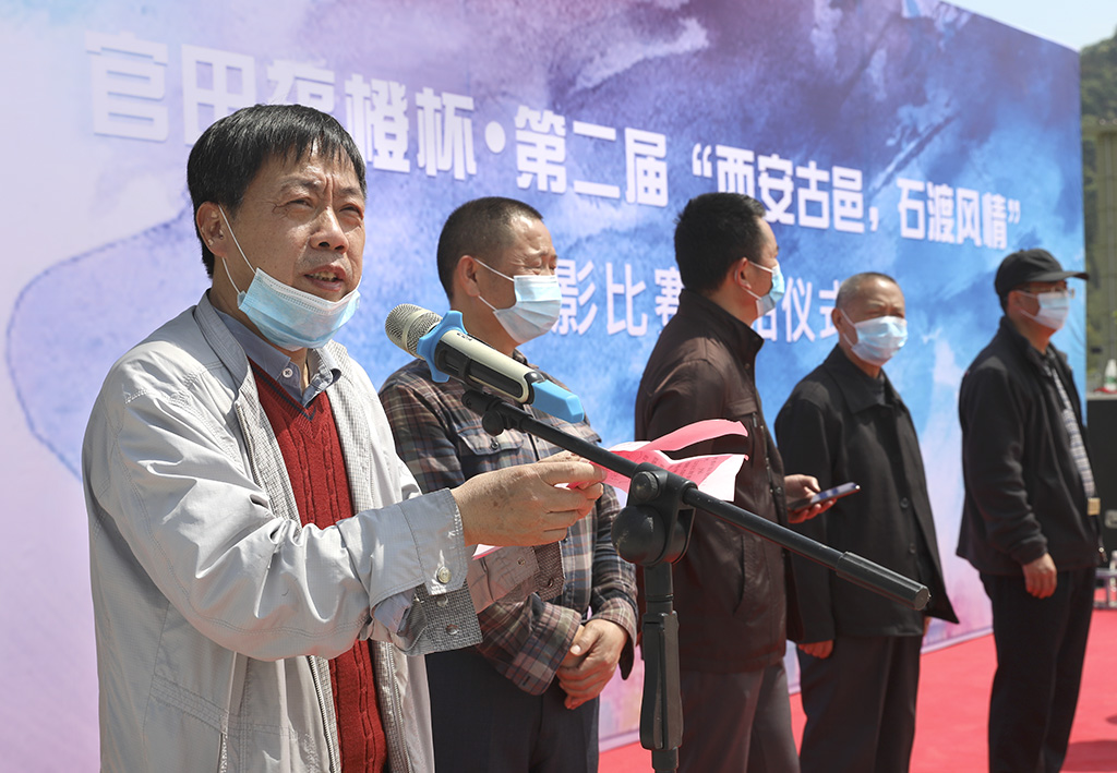 易斌宣布比赛正式启动 开拍仪式上,石渡乡党委书记艾长春代表乡党委政府致欢迎辞,县文联主席雷鸿尧讲话,武宁县摄影家协会主席蒋德先介绍本次赛事,石渡乡党委副书记、乡长陈韬主持启动仪式,党委副书记段珊珊组织启动仪式。
