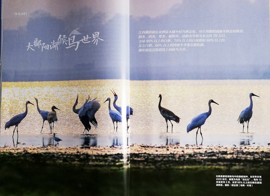 作品以鄱阳湖生态为主线,介绍了丰富多彩的野生鸟类和其中有趣的故事。这是自《人民日报》《人民画报》《大众摄影》《中国摄影报》《人民摄影》《江西摄影》《数码世界》、江西电视台、湖北电视台等媒体推荐特色的观鸟旅游之后,胡业清在国家级刊物上发表的又一组介绍九江市沿江沿湖观鸟旅游的精美鸟类照片,分外引人注目。