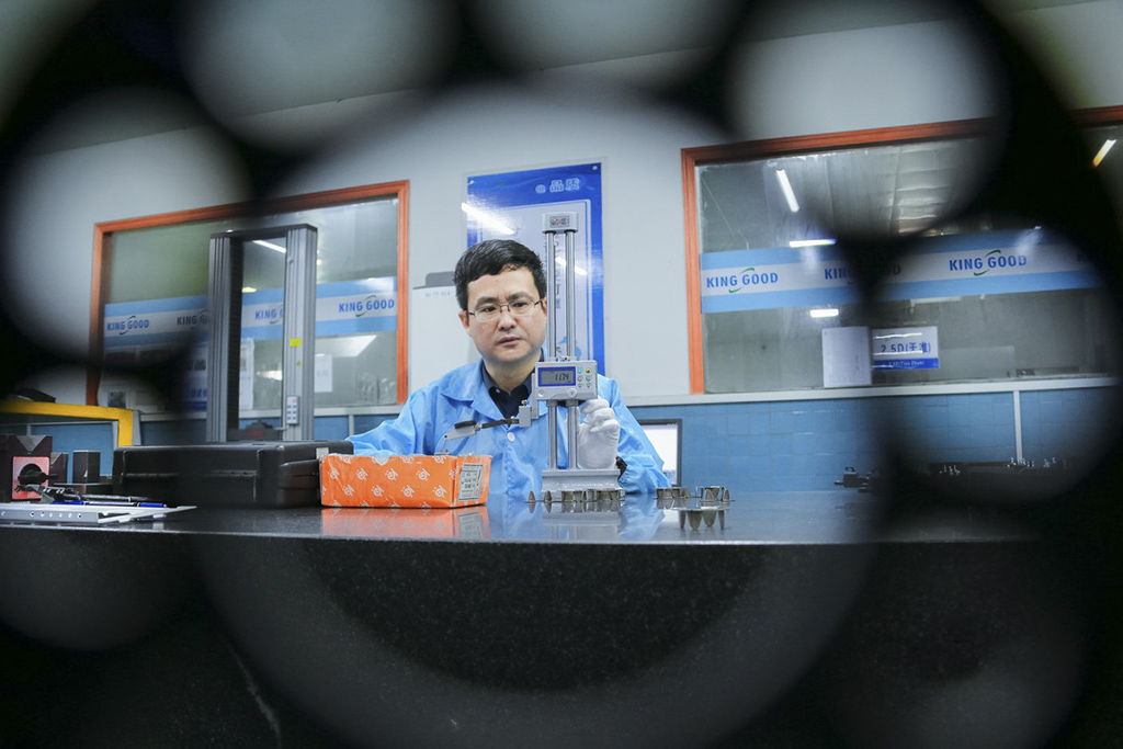 《院士工作站为发展注入“智力引擎”》(银奖) 张 帆 摄 首批江西省“双千计划”入选者、江西瑞普德测量设备有限公司叶向阳正在院士工作站内研发新产品。