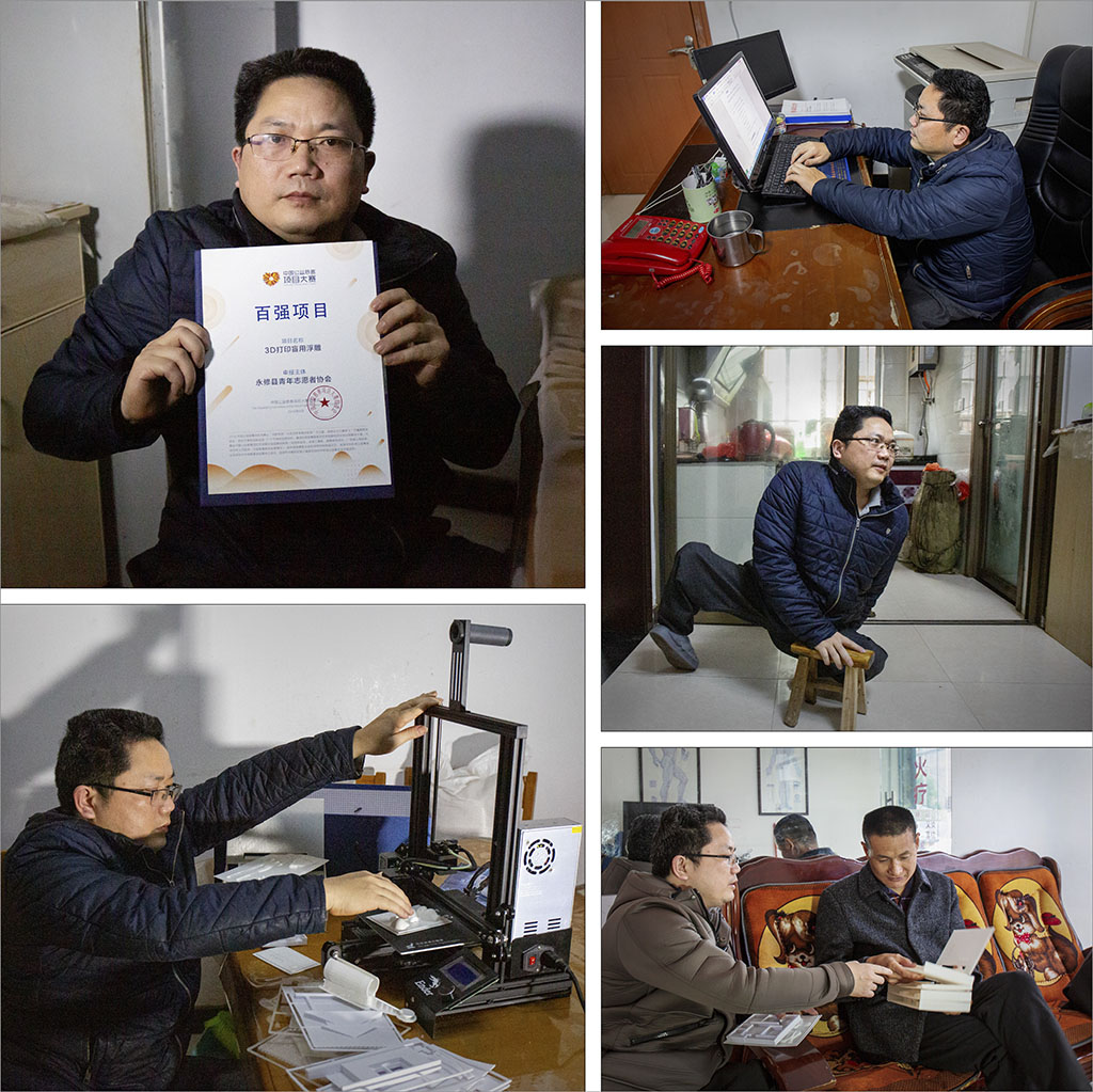《身殘志坚科研梦》(优秀奖) 刘远庆 摄 袁 斌:2018年7月,袁斌开发出一套帮助盲人的3D打印技术残疾人辅助器具,他用这套作品代表永修县青年志愿者协会参加由民政部、中华慈善总会主办的“中国公益大赛”,从1600多个项目中顺利突围,获得全国第48名,全省排名第二。
