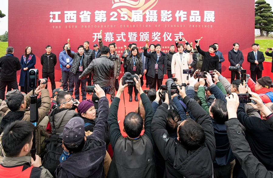 九江摄影网讯(据省摄协)光影描绘美好生活,影像聚焦伟大时代。2020年12月11日上午,由江西省文联、鹰潭市委市政府、江西省摄协主办,鹰潭市委宣传部、 鹰潭市文联 、龙虎山管委会、 鹰潭市摄协、龙虎山旅游发展集团公司等承办的江西省第25届摄影作品展,在江西省鹰潭市龙虎山花语世界公园内隆重开幕。中国摄协、中国摄影报、江西省文联、江西省摄协、鹰潭市政府,鹰潭市委宣传部,鹰潭市文联、龙虎山管委会、各地市摄协、行业摄协等单位负责人、25届影展获奖作者、摄影界专家、媒体记者及省内外摄影爱好者,约1000余人出席了开幕式。
