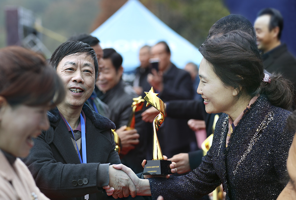 江西省文联党组书记马玉玲为优秀组织工作奖获得集体九江市摄协主席宋小勇颁奖