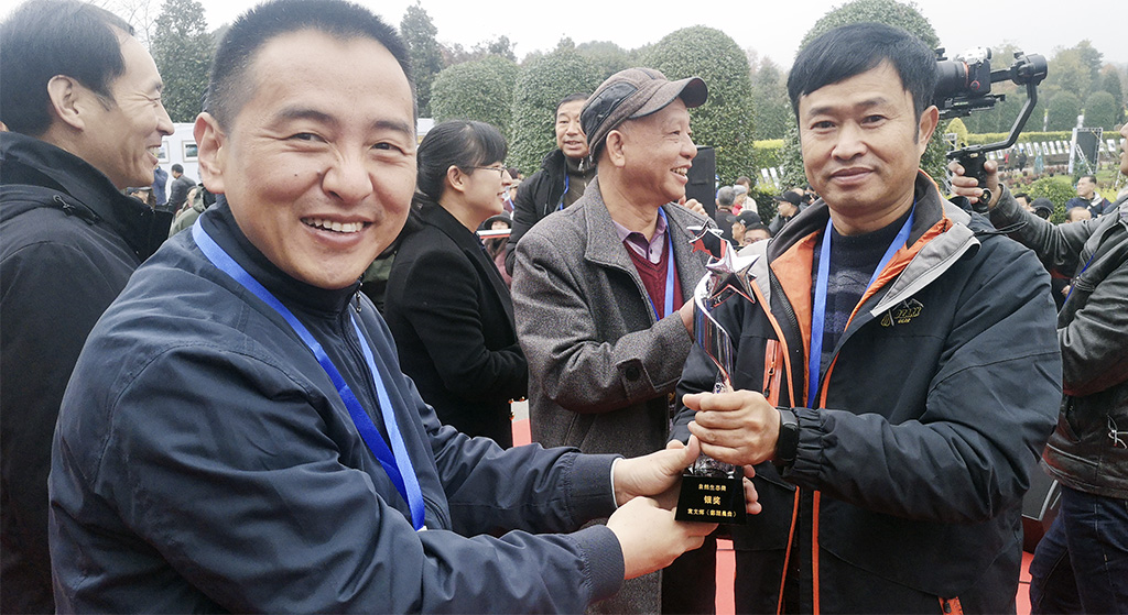 中国摄影报副总编柴选为九江获奖者袁文辉颁奖
