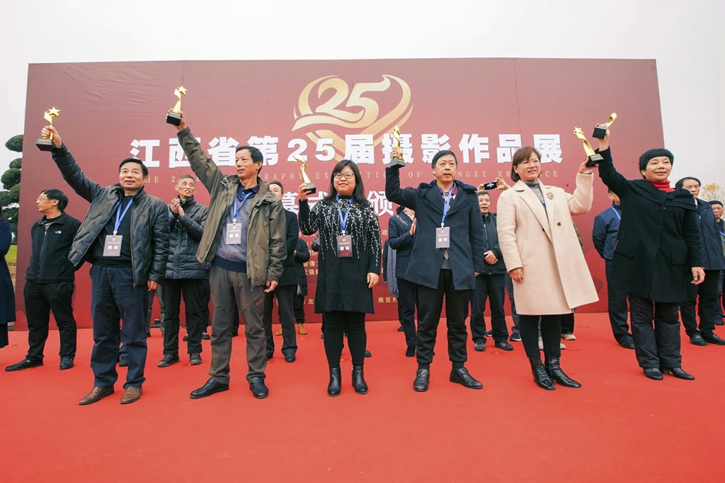 经初评、终评,共评出四大类金、银、铜奖及优秀奖120幅,入选作品240幅,共计360幅。这些作品基本涵盖了江西摄影人近三年来大胆探索、锐意创新的最新成果,艺术地表现了江西秀美的自然风光和醇美的人文风情,生动反映了江西改革发展进程、脱贫攻坚伟业以及人民群众对美好生活的向往,彰显了我省广大摄影人的社会责任感和历史使命感。 九江在这次届展中取得较好成绩,共获奖、入选作品53幅(组),其中获得金奖2个、银奖4个、铜奖4个、优秀奖13个、入选作品30幅。在全省设区市排列首位。九江市摄影家协会被评为优秀组织工作奖。