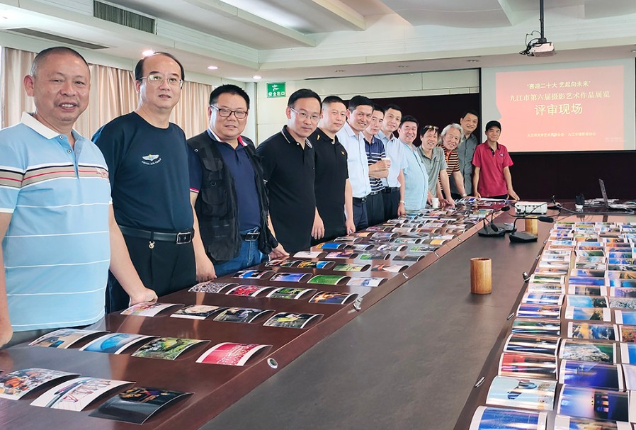 评委终评合影 九江摄影网讯(李涛渊)日前,由江西省摄影家协会、中共九江市委宣传部指导,九江市文学艺术界联合会、九江市摄影家协会主办的“喜迎二十大 艺起向未来”九江市第六届摄影艺术展览作品评选揭晓。 本届摄影展览征稿启事发布以后,仅两个月的时间,就收到了近300名作者选送的2200多件作品。为了确保本次届展评选公正、公平,在评选过程中,九江市摄协主席团成员全部参加,对应征作品进行了初评,评选出700件作品提交终评。2022年9月27日,九江市摄协邀请了市文联联络员、市摄协顾问、名誉主席等组成的评委会对初评作品进行了终评。评委会按照“以习近平新时代中国特色社会主义思想为指导,坚持‘二为’方向和‘双百’方针,坚持以人民为中心”的创作导向,“体现时代元素、突出九江题材、鼓励新人新作、提倡风格多样”的原则,进行了认真细致、严谨规范、公正公平的评审。分别评选出了社会生活类、自然生态类、艺术创意类、专题组照类、抖音短视频类五大类入展作品280件,其中金奖5件,银奖14件、铜奖20件,优秀奖36件,入选作品205件,入展数量创九江历次届展最高纪录。同时,对不符合征稿要求的作品取消了入选、获奖资格。