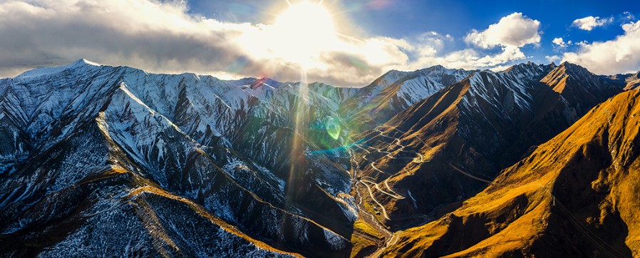 《云栖布宫》 殷锡翔 摄 车轮碾过秋光里的经纬,镜头框住天地间的壮阔。我们一行八位摄影人,怀揣对雪域高原的向往,从10月7日开始,从九江启程,沿318川藏线向西而行,再循317川藏北线踏歌归来,21天的旅程里,风霜雨雪皆成景,人文自然尽入镜。 10月的风裹挟着秋意,从利川的山林吹到成都的街巷,再到雅安318博物馆里陈列的岁月痕迹,每一步都踏在“中国人的景观大道”的序章上。泸定桥的铁索映着晨光,康定的情歌随秋风漫过山川,天路十八弯如银带缠绕山间,卡子拉山口的经幡在海拔四千多米的高空猎猎作响。理塘的草原还留着夏末的余温,姊妹湖藏在雪山脚下,碧水如镜倒映着蓝天白云,随手一拍便是不加修饰的画卷。东达山垭口的积雪初现,怒江72拐的弯道惊险刺激,然乌湖的晨雾似轻纱笼罩湖面,墨脱的海市蜃楼如梦似幻,波密嘎瓦隆的林海层林尽染,鲁朗小镇的石锅香混着松涛声漫溢山间。林芝的秋意最浓,卡定沟的瀑布飞流直下,直至拉萨城的轮廓撞入眼帘——布达拉宫金顶在阳光下熠熠生辉,大昭寺前的信徒虔诚叩拜,羊湖的蓝如宝石镶嵌在群山之间,加诺拉山口的风捎来高原的问候,每一处风景都让快门声此起彼伏。