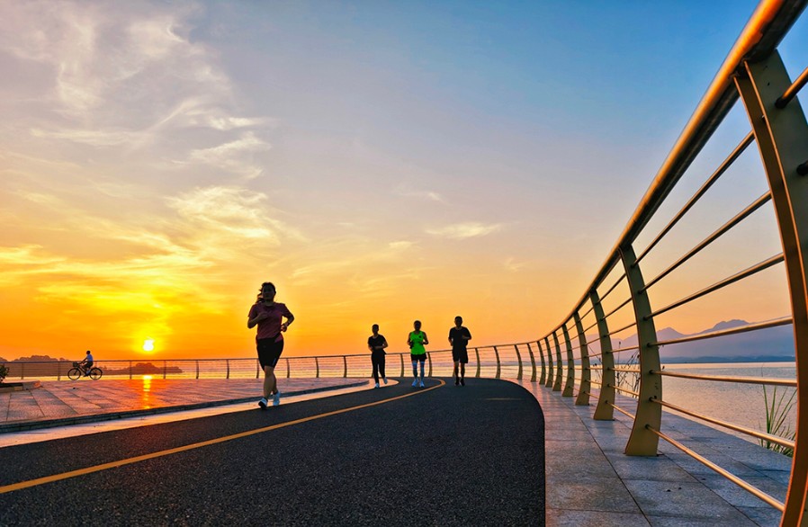 《晨跑》(西海湾湖滨路) 卢 斌 摄
