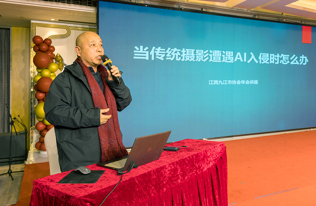 邀请摄影名家讲座是九江市摄协联谊会的一大特色,今年协会邀请了国内著名摄影家、“黑雪影像坊”创办人李伟光来浔作了《当传统摄影遭遇AI入侵时怎么办》的专题讲座,本土摄影家熊伟作了题为《鸟类视频拍摄与后期处理的方法和技巧》的艺术分享。联谊会才艺表演、幸运抽奖活动将联谊会推向了高潮。
